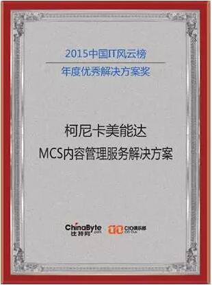 近日柯尼卡美能达喜获中国IT风云榜双项大奖"2015 年度IT风云榜"的年度优秀解决方案奖和年度优秀产品奖。
